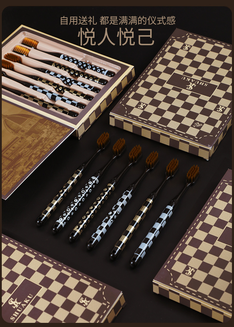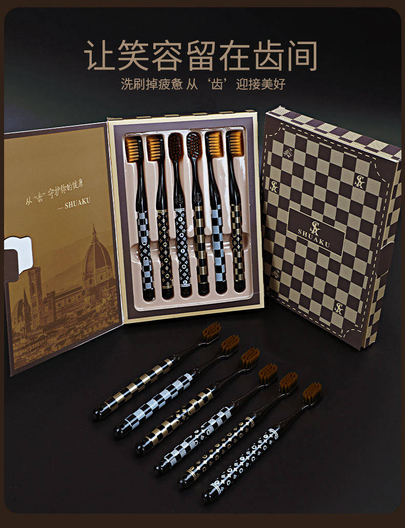 [6 Sets Of Gift Box] New High-Grade Soft Bristle Toothbrush Non-Slip Handle Adult Wide Head Household Couple Toothbrush